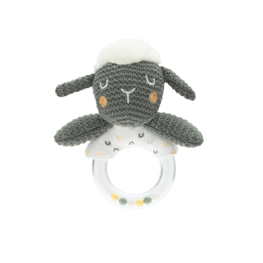 Със своя забавен и практичен дизайн, играчката плюшена дрънкалка SLEEPY SHEEP подпомага сетивното развитие, като същевременно забавлява и радва бебето.